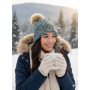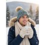 Blue Teal Gold Hand Knit Winter Beanie Hat w Pom Pom Warm Cozy Handmade Knit Cap Unisex Support & Awareness For Chronic Rare Illness