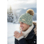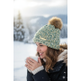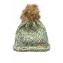 Green and Brown Hand Knit Winter Beanie Hat w Pom Pom Warm Cozy Handmade Knit Cap Unisex Support & Awareness For Chronic Rare Illness